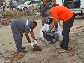 Sem as duas orelhas e com marcas de cinco perfurações no rosto, foi encontrada na manhã deste sábado (08), por volta das 6h, a cabeça de um homem que foi assassinado e enterrado ontem na comunidade Aguilândia, em Marcos Moura, Santa Rita. A vítima teve a cabeça decepada.