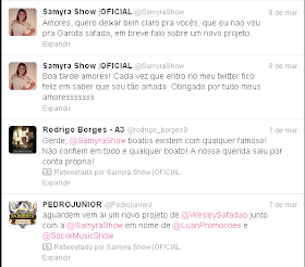 Sobre o assunto, Samyra já informou que não vai para a Garota Safada. É um projeto novíssimo. Segundo a A3 Entretenimento, empresa detentora dos direitos do Forró dos Plays, Samyra cumprirá a agenda da banda até o próximo dia 05 de abril e depois partirá para o seu novo projeto. Já em relação a nova cantora do Forró dos Plays, nada até o momento foi divulgado.